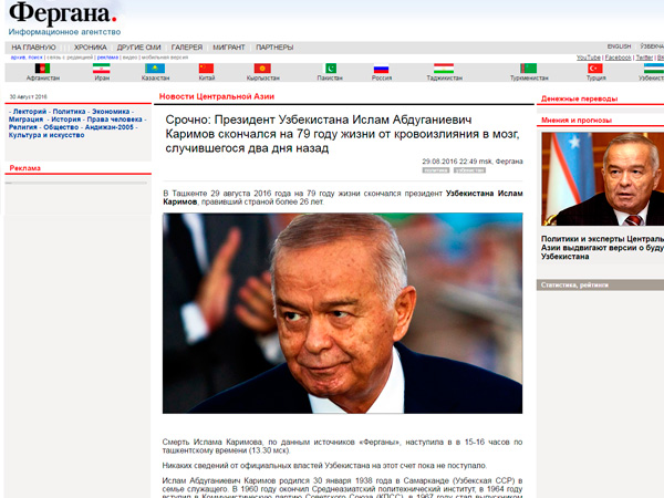 Поздним вечером во вторник, 1 октября, Роскомнадзор заблокировал сайт информационного агентства «Фергана.ру». Это одно из немногих русскоязычных агентств, которое оперативно сообщает о событиях, происходящих в странах Центральной Азии. Директор информагентства Даниил Кислов рассказал корреспондентке «Полит.ру» Ане Гольдман о том, что происходит.