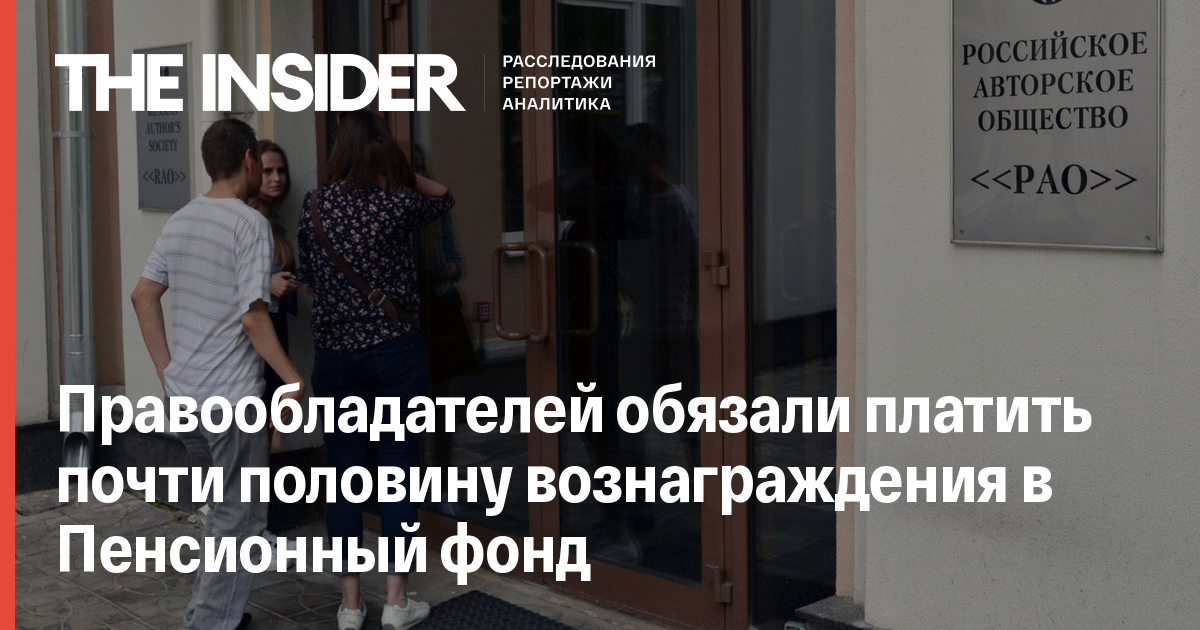 Правообладателей обязали платить почти половину вознаграждения в Пенсионный фонд