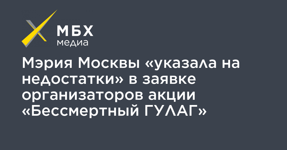 Мэрия Москвы «указала на недостатки» в заявке организаторов акции «Бессмертный ГУЛАГ», которые запланировали митинг на 13 октября, об этом «МБХ медиа» сообщил сопредседатель ПАРНАСа Михаил Шнейдер.