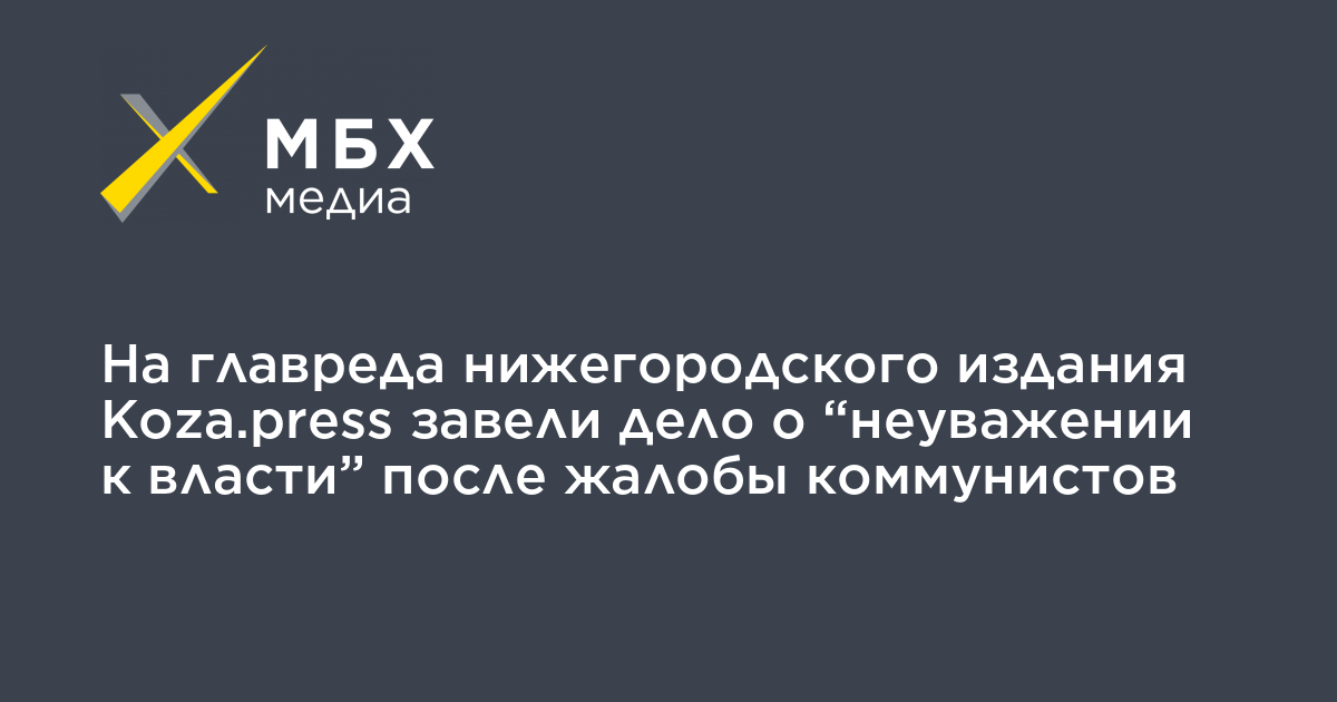 На главреда нижегородского издания Koza.press завели дело о «неуважении к власти» после жалобы коммунистов
