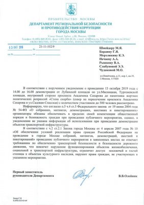 «Организаторы обязаны обеспечивать в пределах своей компетенции общественный порядок и безопасность граждан при проведении публичного мероприятия, однако в уведомлении не указана информация об использовании при проведении демонстрации объектов транспортной инфраструктуры», — объясняют отказ чиновники.
