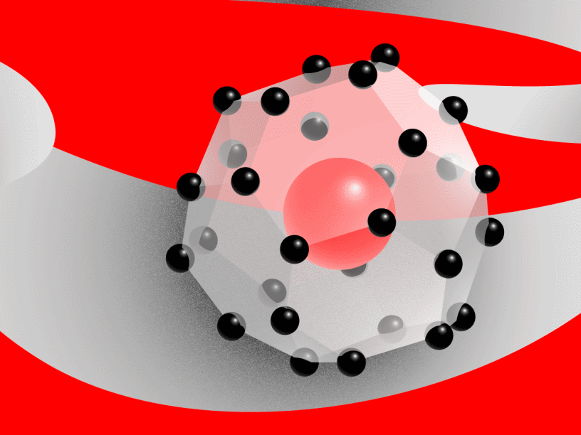 Кристаллическая структура полученного авторами исследования «запрещенного» соединения — супергидрида церия, CeH9. Атомы церия показаны в виде красных сфер. Черным показаны атомы водорода и химические связи между ними. Изображение: Иван Круглов, МФТИ и ВНИИА им. Духова