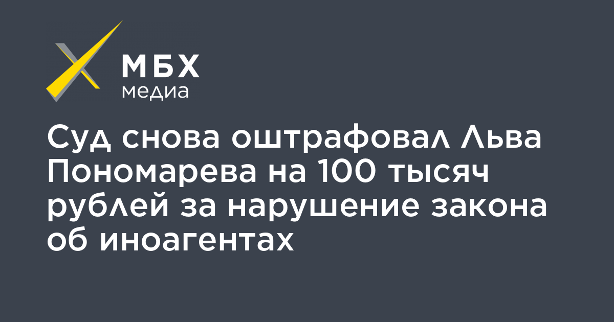 Мещанский суд Москвы оштрафовал правозащитника Льва Пономарева на 100 тысяч рублей по статье о нарушении закона об иностранных агентах (часть 2 статьи 19.34 КоАП). Об этом сообщает корреспондент «МБХ медиа».