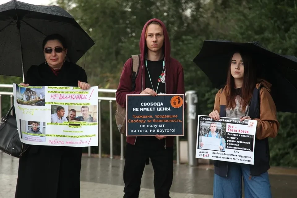 5 ноября 2017 года 18-летний Ян Сидоров и 21-летний Влад Мордасов около полудня вышли на площадь Советов напротив здания правительства Ростовской области. В рюкзаках у них были два плаката, сделанные от руки, и мегафон. Немного подумав, они развернули ватман, на котором накануне написали: «Верните землю ростовским погорельцам». Парней тут же окружили люди, стали снимать их на телефон. Как позже выяснилось, среди снимавших были и сотрудники Центра по борьбе с экстремизмом. Как только плакат был развернут, ребят задержали и увели с площади. На втором плакате было написано: «Правительство в отставку».