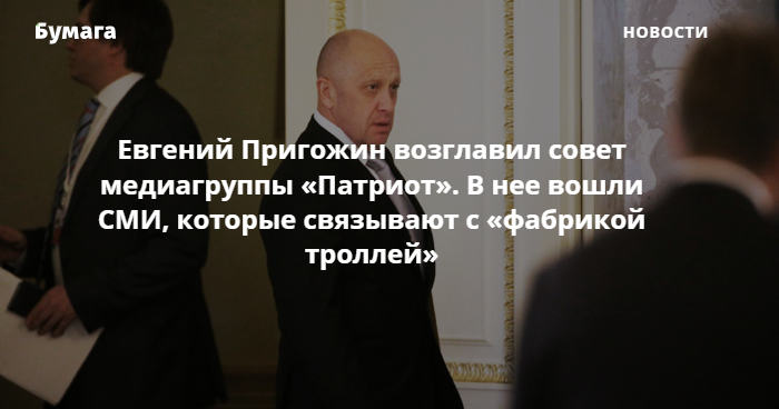 В медиагруппу «Патриот» вошли «Федеральное агентство новостей» (ФАН), «Народные новости», «Экономика сегодня» и «Политика сегодня», которые связывали с «фабрикой троллей». До этого Пригожина называли человеком, контролирующем эти издания. Их совокупная месячная аудитория превышает 26 млн пользователей: это больше, чем у ТАСС или RT, пишет издание The Bell.