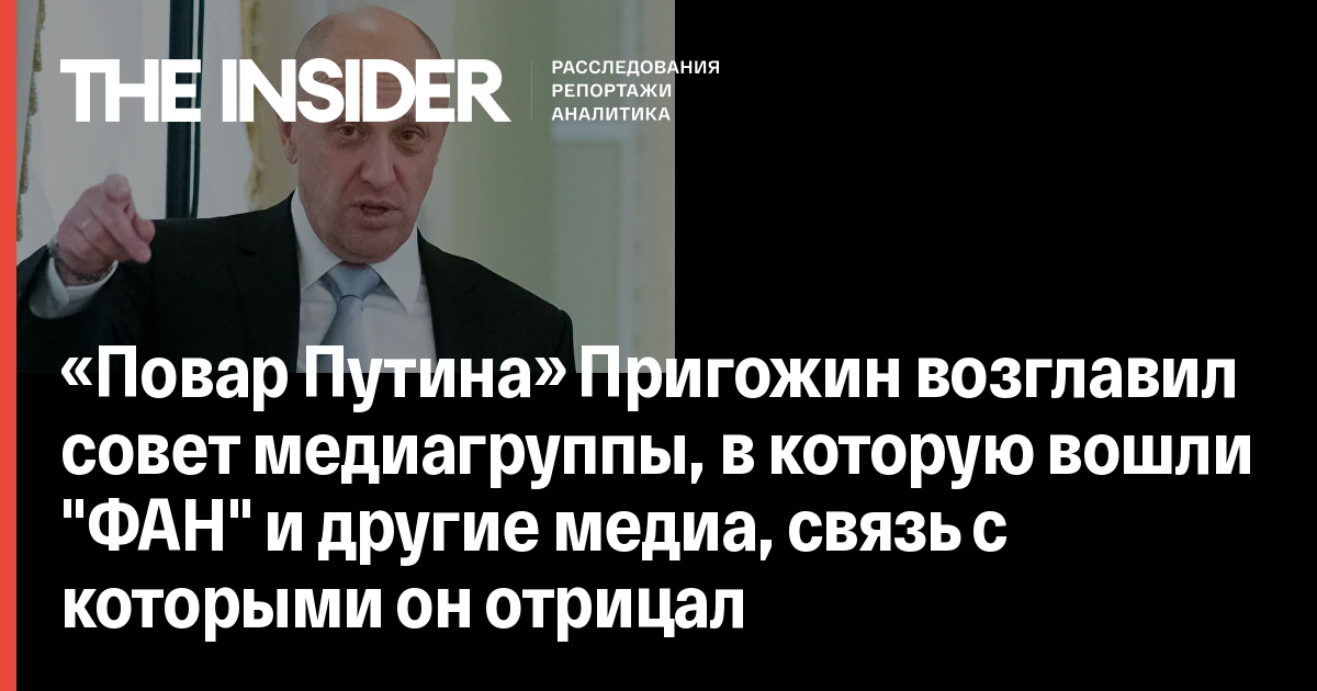 «Повар Путина» Пригожин возглавил совет медиагруппы, в которую вошли "ФАН" и другие медиа, связь с которыми он отрицал