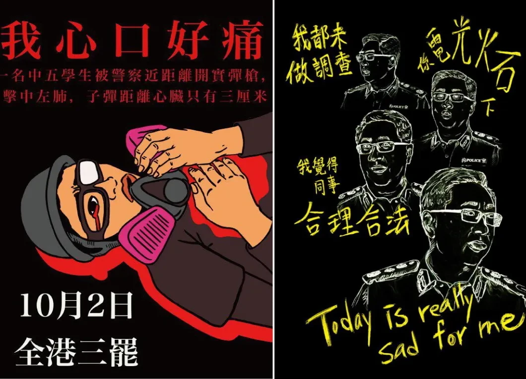 «Моя сердечная рана болит,2 октября три забастовки по всему Гонконгу», автор неизвестен.