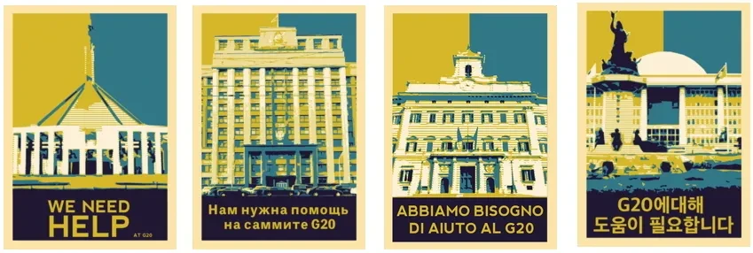 Чтобы привлечь внимание международного сообщества, демонстранты решили обратиться за поддержкой к странам большой двадцатки, за исключением, конечно, КНР. 26 июня они провели «акцию-марафон» по 19 консульствам и сделали по этому случаю плакаты на разных языках, в том числе на русском.