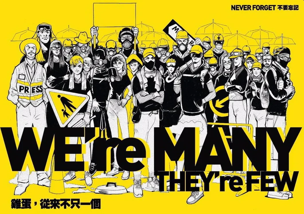 Гонконгцы вдохновлялись массовой культурой. Очень популярны сериал «Голодные игры» и «Зима в огне» — документальный фильм Netflix о событиях 2014 года на Украине, и, конечно, Оруэлл. На улицах демонстранты поют Do you hear the people sing? («Ты слышишь, как люди поют?») из «Отверженных». Слова Брюса Ли «Будь как вода, мой друг» — один из их основных лозунгов. (Брюс Ли имел в виду, что нужно адаптироваться и расти — В. Ч.).