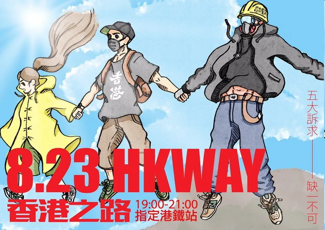 Вообще демонстранты часто проводят параллель между протестами в бывших республиках СССР и ситуацией в Гонконге сейчас. Акция 23 августа называлась «Путь Гонконга». Интересно, что ее название перекликается с китайской правительственной инициативой «Один пояс — один путь». Но еще интереснее, что она была вдохновлена «Балтийским путем» — мирной акцией Литвы, Латвии и Эстонии.