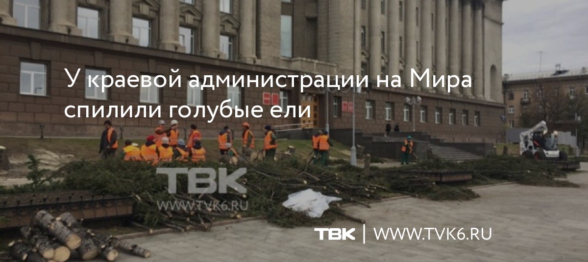 О таких работах заранее ничего не было известно. У здания краевого правительства было высажено 56 голубых елей. Их стали высаживать там с 50-х годов. Для горожан увиденное стало шоком.