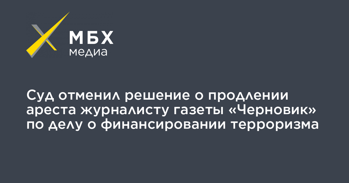 Суд отменил решение о продлении ареста журналисту газеты «Черновик» по делу о финансировании терроризма