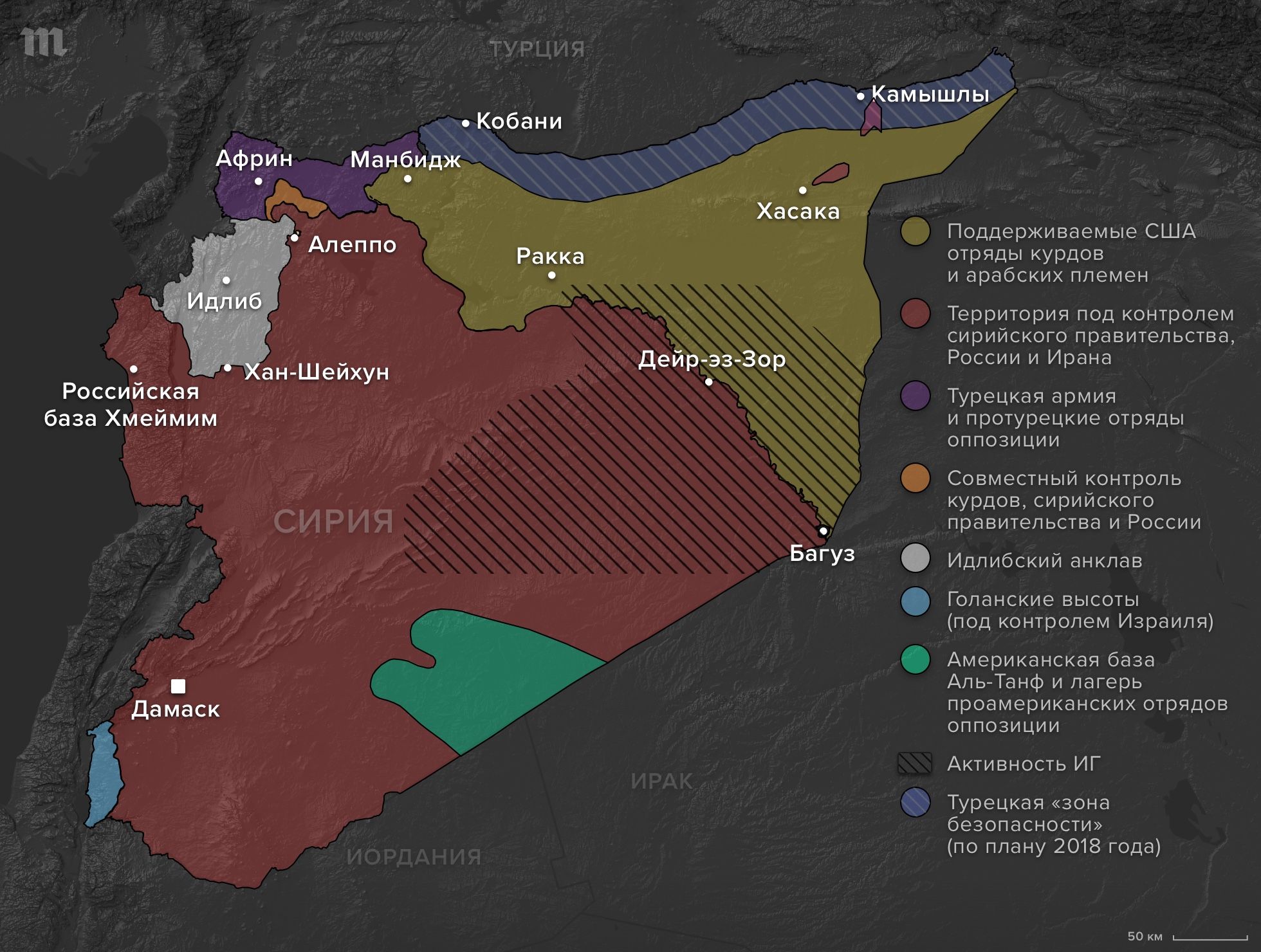 Заявление Трампа означает полный отказ от политики США относительно конфликта в Сирии, в который они вмешались в 2015 году. Тогда американцы создали коалицию из курдов и арабских племен, а также европейских и арабских стран, которая не дала боевикам «Исламского государства» взять курдский город Кобани на границе с Турцией. Взятие города и его окрестностей привело бы к переходу под власть ИГ всей северной Сирии.