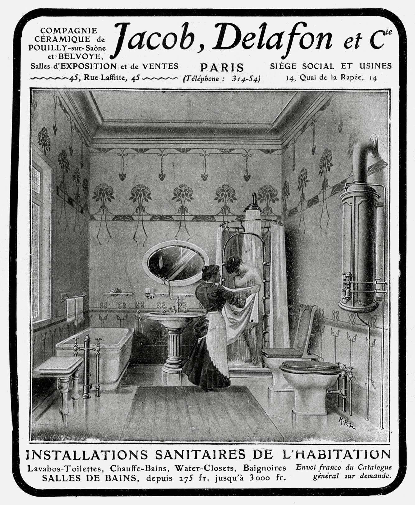 А еще 130 лет назад была основана компания Jacob Delafon, которая производит сантехнику. С самого начала компания придавала большое значение дизайну. Например, вот так выглядела одна из первых ванн, созданных компанией.