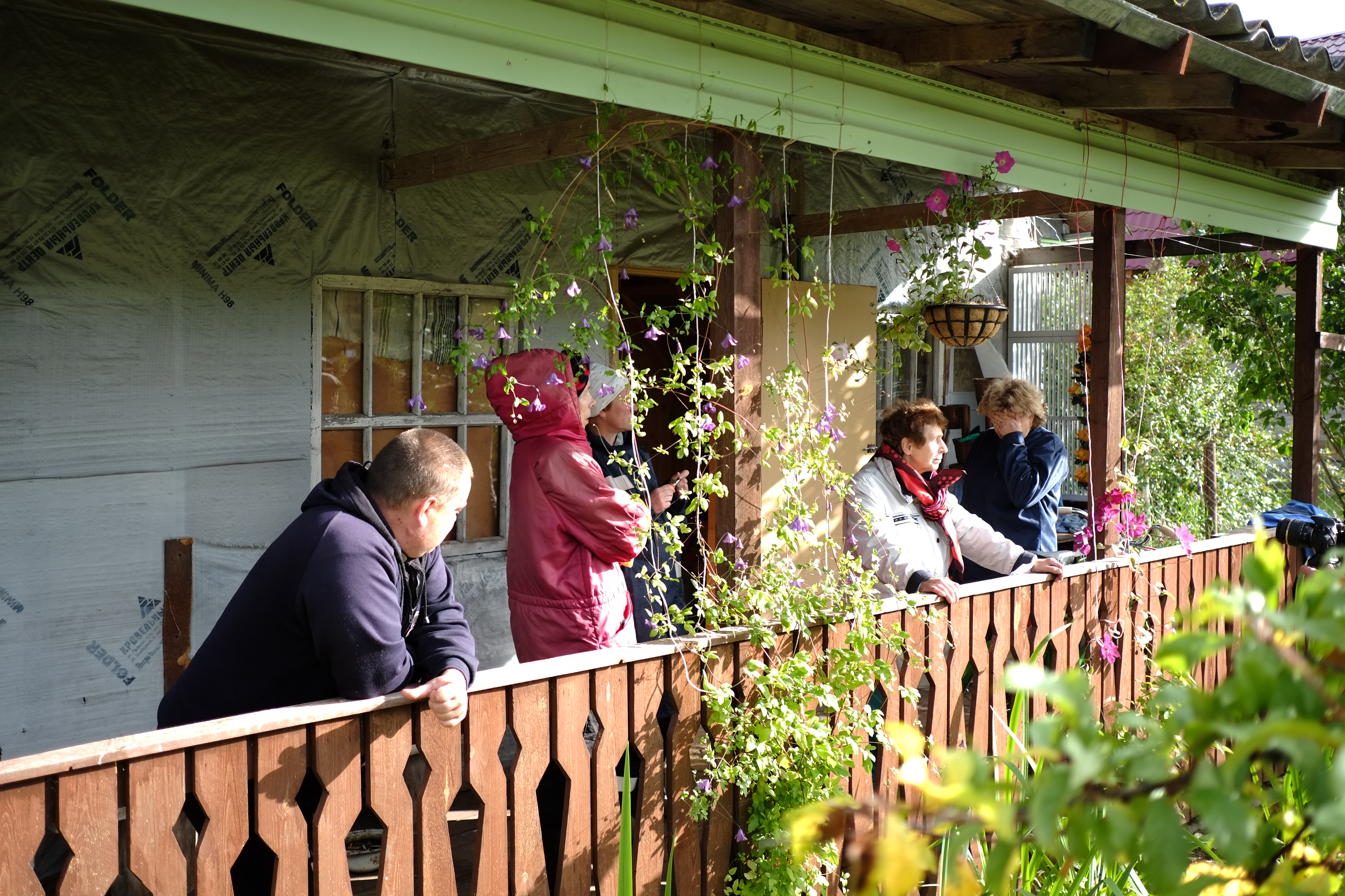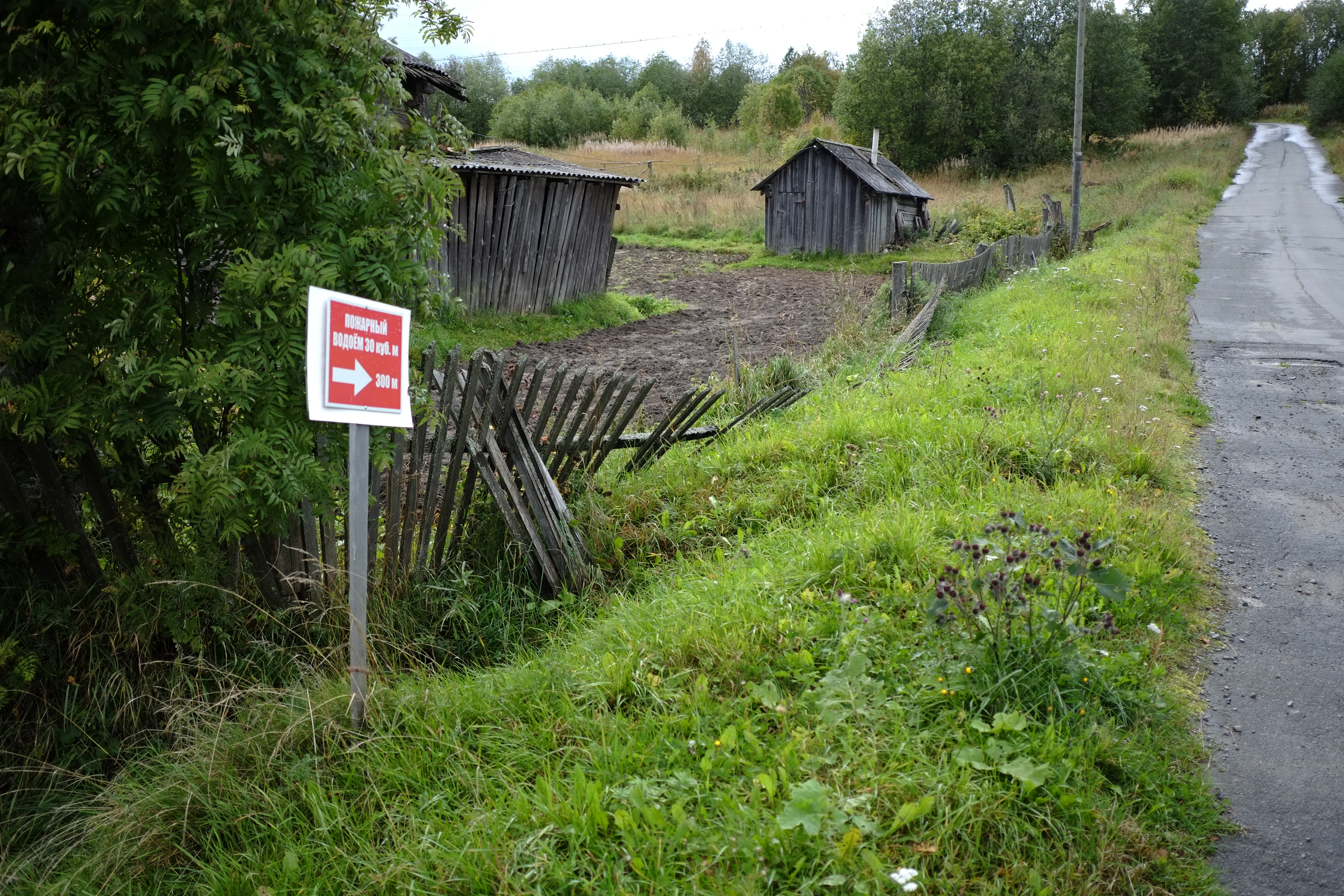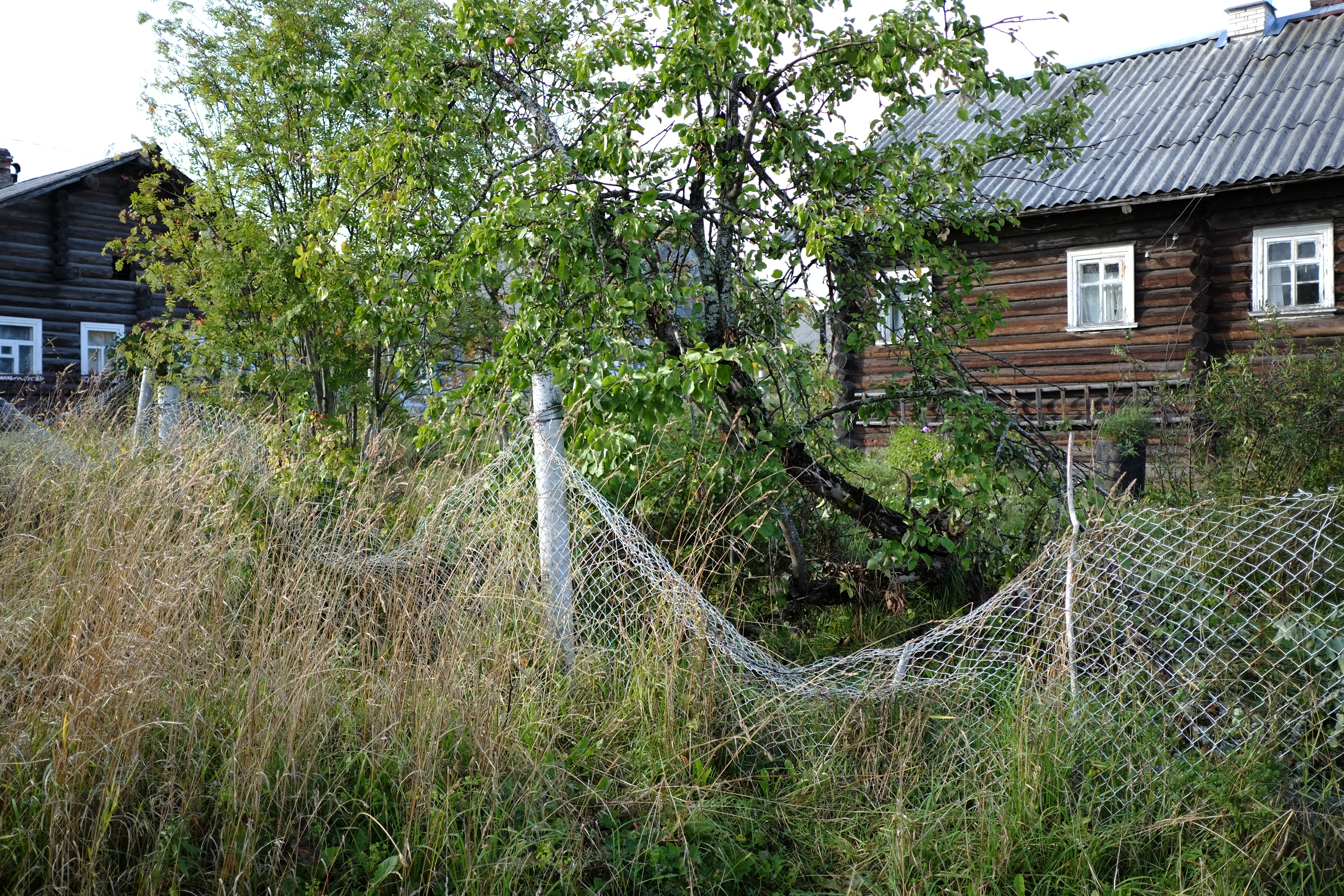 У соседки Светланы, Татьяны Аристых, старинный карельский дом 1917 года постройки – двухэтажный, с подводами, на улице в углу небольшая гипсовая фигурка "Хозяйка Медной горы", аккуратный ухоженный сад украшен астрами и георгинами. За домом – грядки в медвежьих следах и экскрементах и поломанные сливовые деревья.