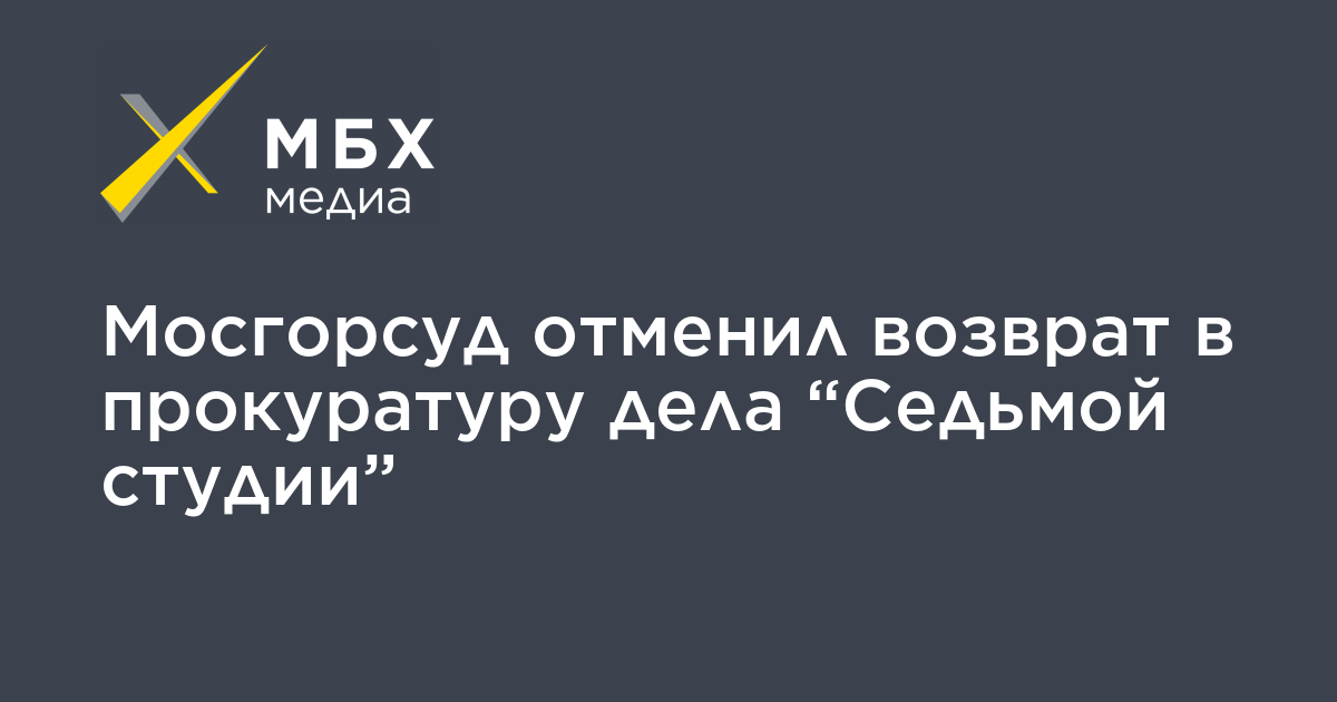 Мосгорсуд отменил возврат в прокуратуру дела «Седьмой студии», частично удовлетворив апелляцию обвинения. Об этом сообщает корреспондент «МБХ медиа».