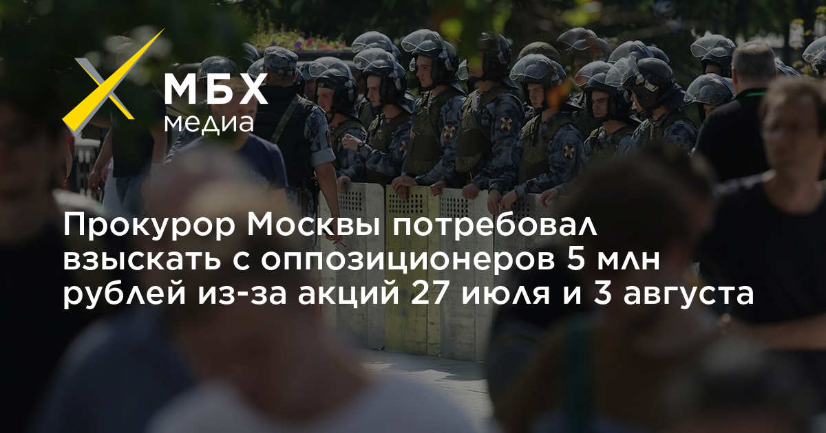 Прокурор Москвы потребовал взыскать с оппозиционеров 5 млн рублей из-за акций 27 июля и 3 августа