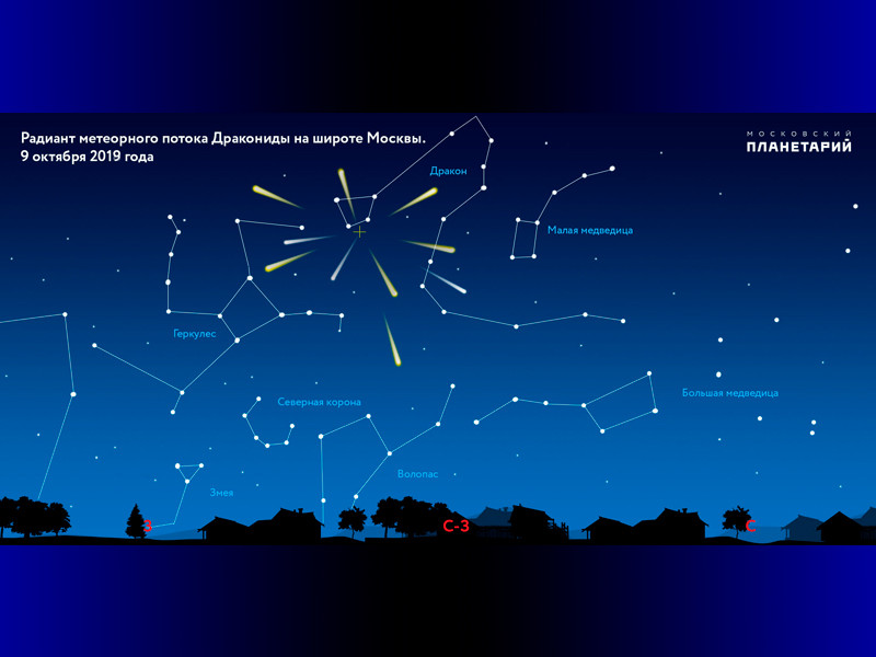 Метеорный поток Дракониды продлится около недели, но после 9 октября количество метеоров станет заметно меньше.