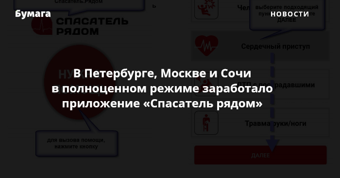 В Петербурге в полноценном режиме заработало приложение «Спасатель рядом», которое начали тестировать в прошлом году. Сервис также стал доступен для пользователей из Москвы, Сочи, Челябинска и Новосибирска.