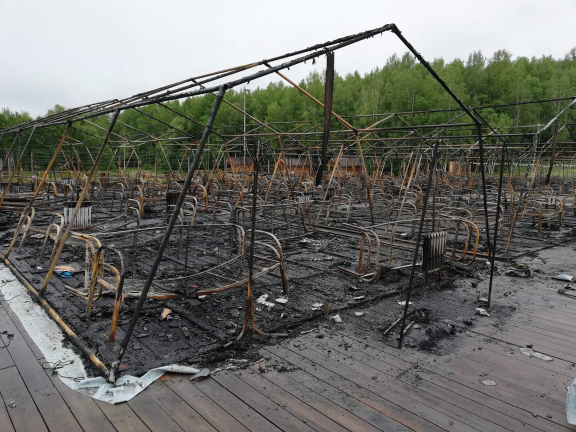 - Всего в лагере на момент пожара находились 189 детей. Из 26 палаток, в которых они проживали, сгорели 20, шесть обгорели. Сейчас лагерь "Холдоми" закрыт властями Хабаровского края.