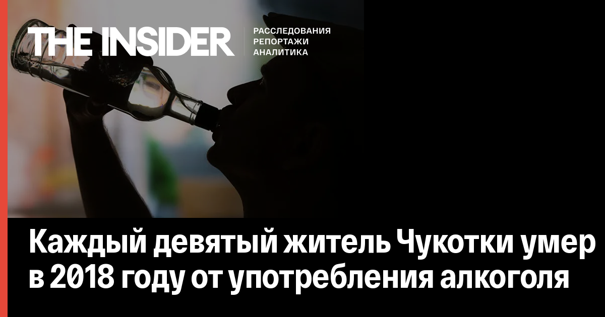 Лидерами по смертности из-за алкоголя стали регионы Дальнего Востока. На Чукотке коэффициент смертности от алкоголя составил почти 13 человек на 10 тысяч населения — фактически это означает, что каждый девятый человек, скончавшийся на Чукотке в 2018 году, официально умер из-за алкоголя.