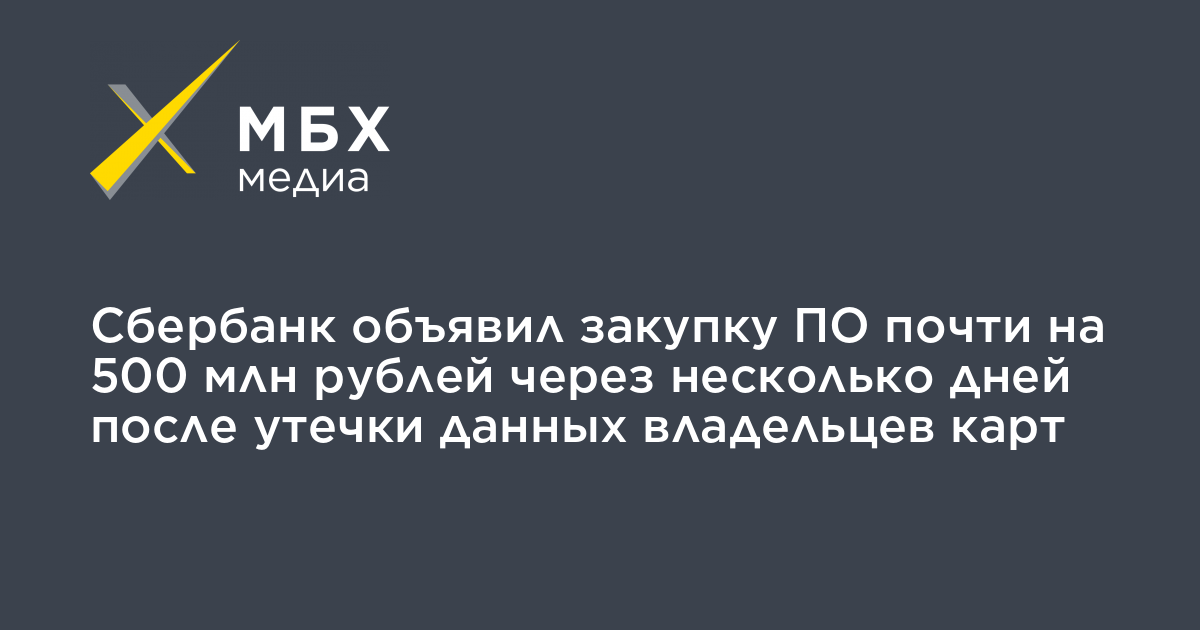 Сбербанк разместил тендер на закупку программного обеспечения стоимостью 482 млн рублей спустя несколько дней после крупной утечки данных владельцев кредитных карт. Информацию «МБХ медиа» обнаружило на портале госзакупок.