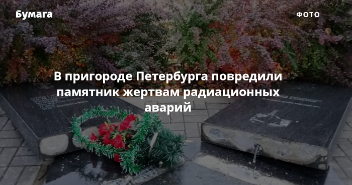 Памятник жертвам радиационных аварий и катастроф в Колпине сломали неизвестные. Об этом жители района сообщили в социальных сетях.