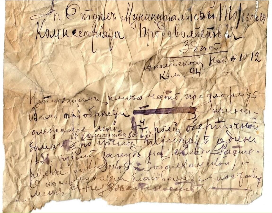 А еще письмо в комиссариат продовольствия, в котором чиновникам предлагают приобрести оберточную бумагу.