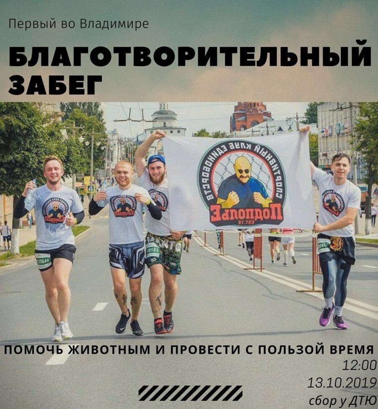 Организовывают благотворительный забег участники спортивного клуба “Подполье”. Они пишут, что это первая во Владимире благотворительная пробежка.