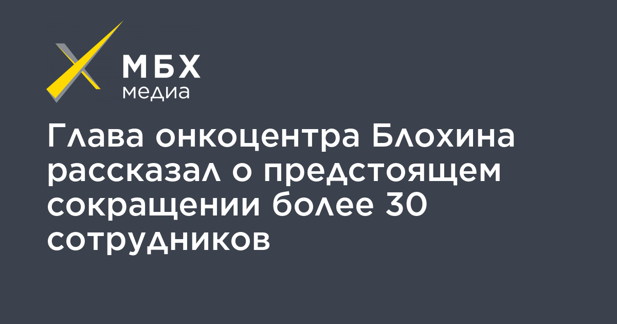 Глава онкоцентра Блохина рассказал о предстоящем сокращении более 30 сотрудников
