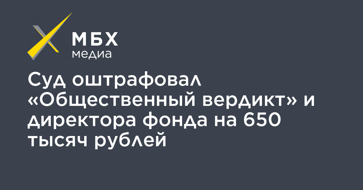 Суд оштрафовал «Общественный вердикт» и директора фонда на 650 тысяч рублей