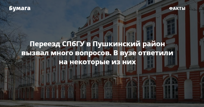 Елена Чернова пояснила, что переезд в кампус в Пушкинском районе будет проходить постепенно и в соответствии с нуждами факультетов. Какие факультеты переедут первыми, не уточняется. В зданиях в центре, вероятно, дольше останутся факультеты, которым не требуются лаборатории.