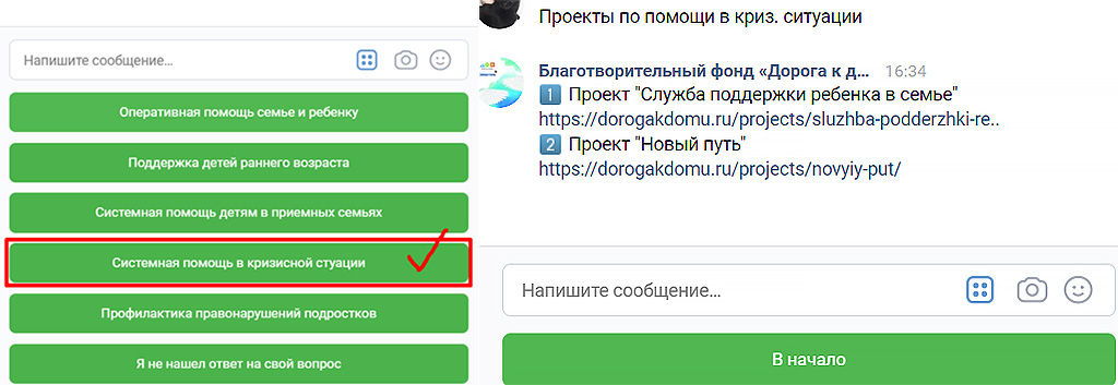 Благотворительный фонд «Дорога к дому» использует чат-бот для поиска полезной информации. За пару кликов можно узнать об актуальных акциях и предстоящих мероприятиях.