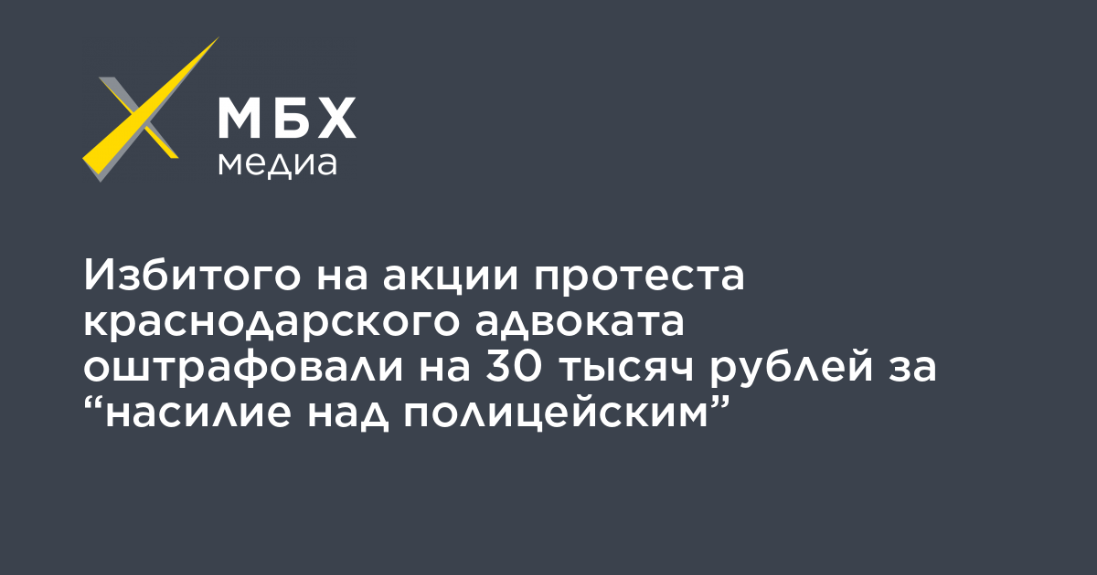 Избитого на акции протеста краснодарского адвоката оштрафовали на 30 тысяч рублей за «насилие над полицейским»