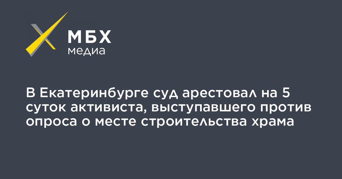 В Екатеринбурге суд арестовал на 5 суток местного активиста Виктора Балдина, который выступал против опроса по определению места строительства храма Святой Екатерины, об этом «Урал. МБХ медиа» сообщил сам активист.