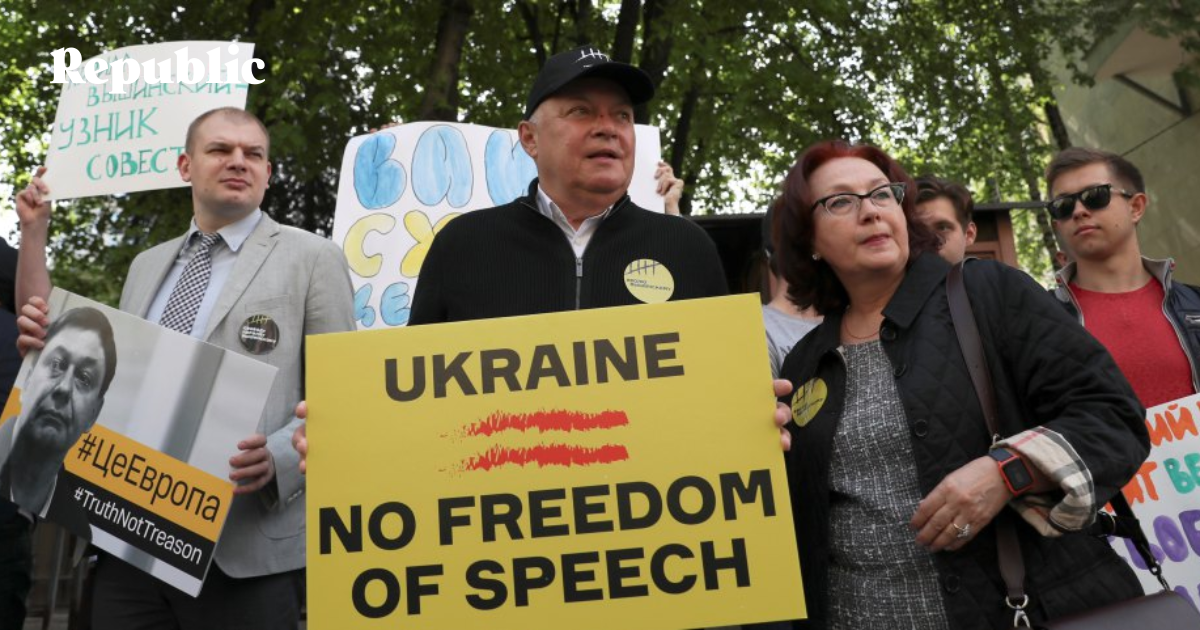 Дмитрий Киселев во время акции в поддержку Кирилла Вышинского. Фото: Evgenia Novozhenina / Reuters
