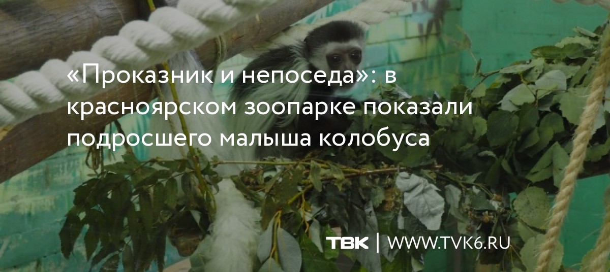 «Проказник и непоседа»: в красноярском зоопарке показали подросшего малыша колобуса
