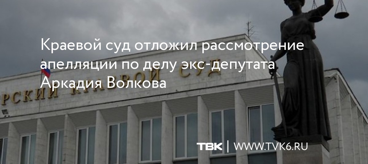 Краевой суд отложил рассмотрение апелляции по делу экс-депутата Аркадия Волкова