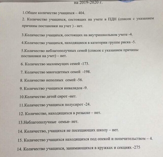 Как уточнили другие педагоги, такое распоряжение поступило в 2016 г., когда "боевики стали возвращаться из Сирии". В этом же году таких указаний не было. "Сейчас у нас социальный паспорт нового образца. Бланк, фото которого распространили в сети, давнишний", – подчеркивает директор 13-й школы.