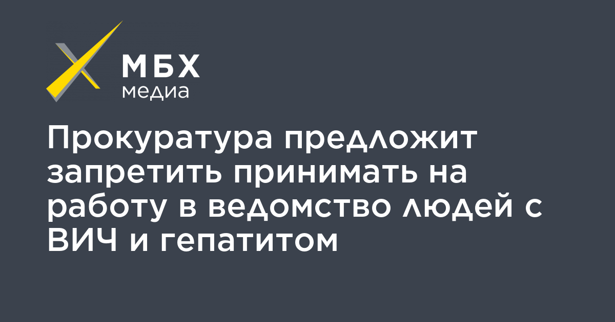 Генпрокуратура предложила запретить брать на работу в ведомство людей с ВИЧ-инфекцией и гепатитом, об этом пишет РБК со ссылкой на текст инициативы, подготовленный для правительства. Подлинность документа подтвердил источник в Минздраве.