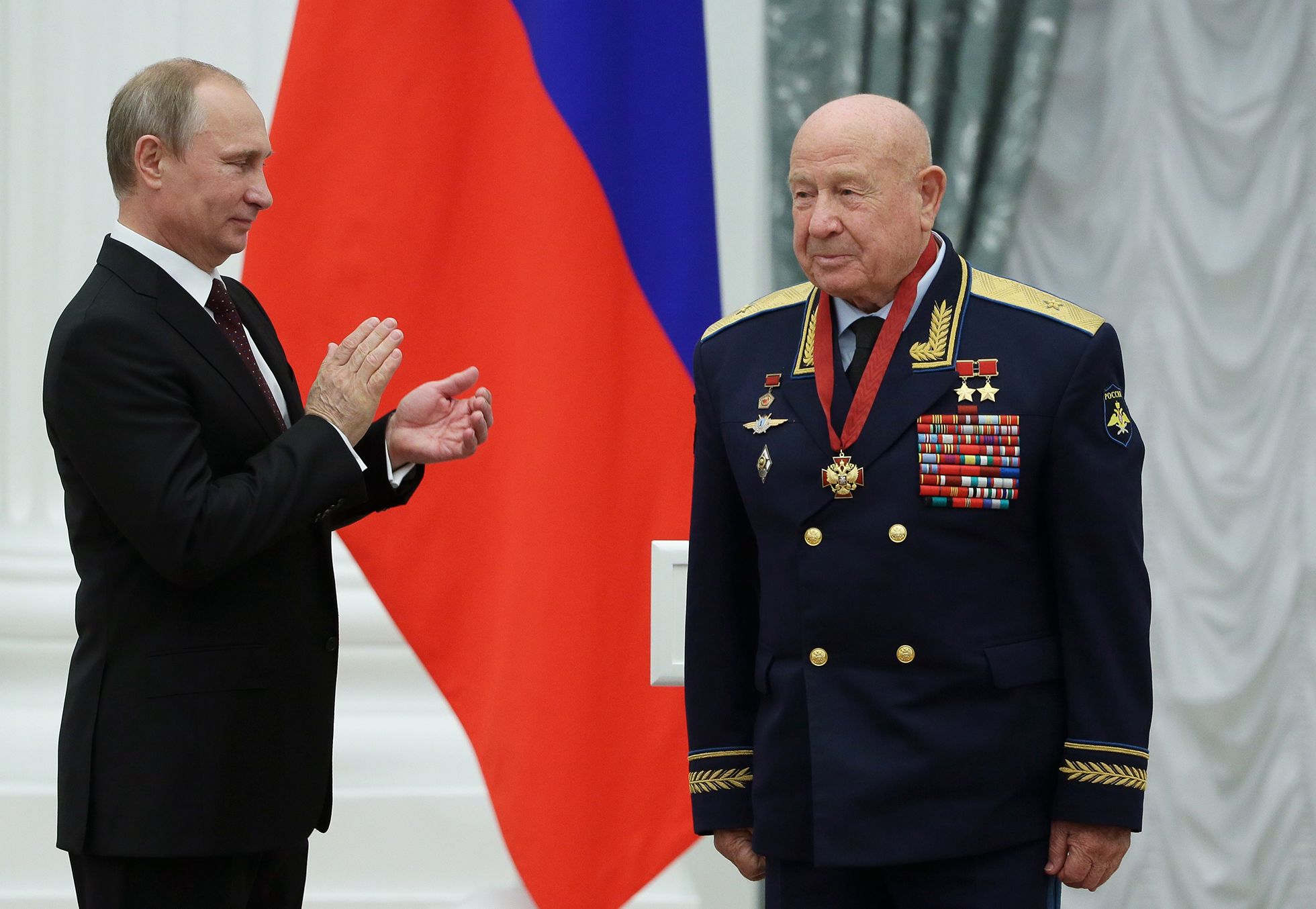 ТАСС / Getty Images Будущий космонавт Алексей Леонов на занятиях в Чугуевском военном авиационном училище. 1956 год.Валентин Черединцев / ТАСС Члены первого отряда космонавтов СССР Алексей Архипович Леонов и Павел Иванович Беляев (слева направо) во время отдыха на Черноморском побережье. Июль 1964 года.Б. Смирнов / ТАСС Второй пилот космического корабля-спутника «Восход-2» летчик-космонавт подполковник Алексей Леонов, его жена Светлана Павловна и дочь Виктория в выходной день в Подмосковье. 1965 год.Валентин Черединцев / ТАСС Летчики-космонавты Павел Беляев (слева) и Алексей Леонов во время физической подготовки. 1965 год.Николай Макаров / Sputnik / Scanpix / LETA Летчики-космонавты Павел Беляев (слева) и Алексей Леонов в центре подготовки космонавтов. 1965 год.ТАСС Документальный фильм киностудии «Моснаучфильм». Слева направо: космонавты Павел Беляев, Владимир Комаров и Алексей Леонов в салоне автобуса по пути на космодром. 18 марта 1965 года.TopFoto / Scanpix / LETA Алексей Леонов во время первого в истории человечества выхода в открытый космос. 18 марта 1965 года.ullstein picture / Getty Images Алексей Леонов в открытом космосе за бортом «Восхода-2». 18 марта 1965 года.Sovfoto / Universal Images Group / Getty Images Алексей Леонов во время выхода в открытый космос. 18 марта 1965 года.Валентин Черединцев / Фотохроника ТАСС Москвичи встречают экипаж «Восхода-2» — Павла Беляева и Алексея Леонова. Москва, 23 марта 1965 года.Валентин Мастюков / ТАСС Митинг на Красной площади по поводу успешного полета космического корабля «Восход-2» с космонавтами Павлом Беляевым и Алексеем Леоновым на борту. 18 марта 1965 года.Владимир Савостьянов, Владимир Мусаэльян / ТАСС Алексей Леонов выступает на пресс-конференции после завершения полета «Восхода-2», во время которого он впервые вышел в открытый космос. Москва, актовый зал МГУ. 26 марта 1965 года.Валентин Черединцев / ТАСС Летчики-космонавты Павел Попович, Алексей Леонов и Юрий Гагарин (слева направо) рассматривают снимки, сделанные космической станцией «Луна-9». 1965 год.Валентин Соболев / ТАСС Летчик-космонавт СССР, Герой Советского Союза Алексей Леонов во время встречи с жителями города Кошице в Чехословакии. Май 1965 года.Альберт Пушкарев / ТАСС Члены основного экипажа космического корабля «Союз» в совместном эксперименте СССР и США «Союз — Аполлон» Алексей Леонов и Валерий Кубасов получают задание перед тренировкой в комплексном тренажере корабля «Союз» в Центре подготовки космонавтов имени Юрия Гагарина. Август 1972 года.Альберт Пушкарев / ТАСС Советские летчики-космонавты Алексей Леонов, Владимир Шаталов и американский астронавт Томас Стаффорд (слева направо) во время беседы с журналистами в Звездном городке. 9 июля 1974 года.Альберт Пушкарев / ТАСС Американский астронавт Томас Стаффорд и Алексей Леонов в спускаемом аппарате тренажера «Союза» в Центре подготовки космонавтов имени Ю.А. Гагарина. 1 мая 1975 года.Space Frontiers / Getty Images Алексей Леонов держит нарисованный им на борту «Союза-19» портрет командира экипажа «Аполлона» Томаса Стаффорда. Июль 1975 года.NASA / AFP / Scanpix / LETA Историческое рукопожатие в космосе: командиры экипажей «Союза-19» и «Аполлона» Алексей Леонов и Томас Стаффорд после стыковки их кораблей. 17 июля 1975 года.ТАСС Алексей Леонов (слева) и Томас Стаффорд во время пресс-конференции. 19 июля 1975 года.ТАСС / Getty Images Торжественная встреча в США после удачного завершения совместного э