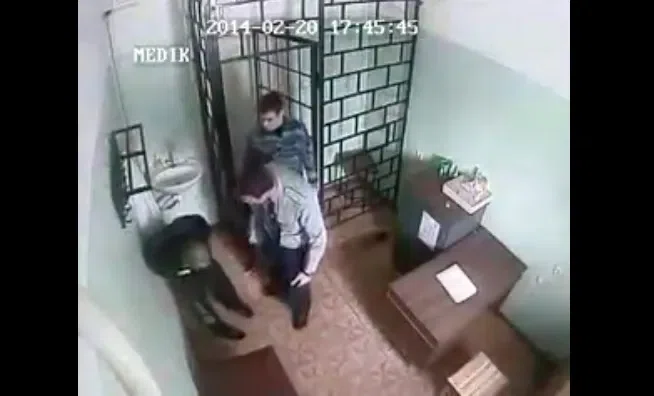 На видеозаписи, датированной 2014 годом, в комнату заталкивают заключенного. За ним входят двое сотрудников колонии и начинают его избивать. Через некоторое время в комнату заходит еще один сотрудник, который, согласно подписи к видеоролику, говорит, что камера не выключена. После этого все уходят из комнаты.
