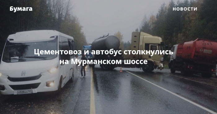Утром 12 октября в Волховском районе цементовоз столкнулся с пассажирским автобусов. Об этом сообщает отдел пропаганды ГИБДД по Петербургу и Ленобласти.
