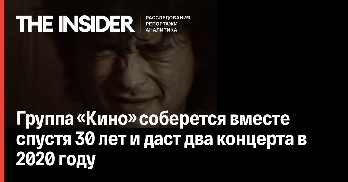 Музыканты группы «Кино» соберутся вместе спустя 30 лет после распада и дадут концерты в Москве и Санкт-Петербурге в 2020 году. Билеты поступят в продажу с 31 октября 2019 года.
