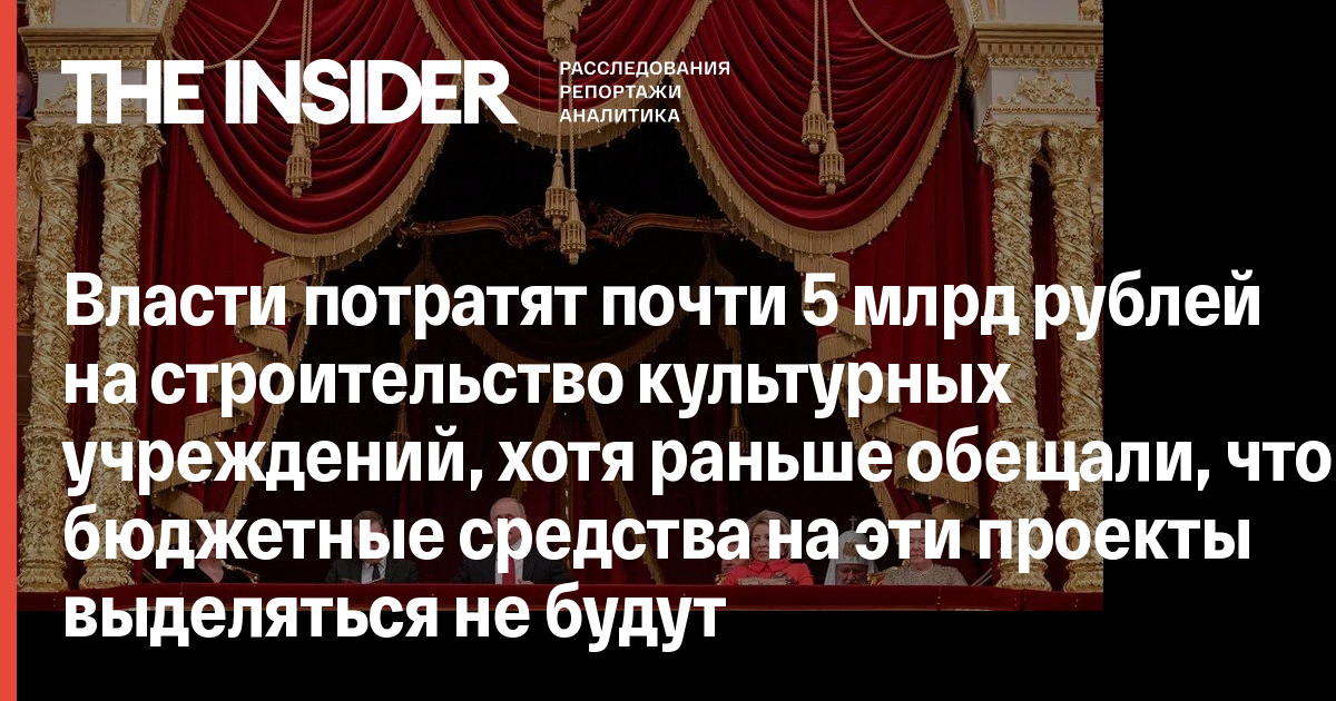 Власти потратят почти 5 млрд рублей на строительство культурных учреждений, хотя раньше обещали, что бюджетные средства на эти проекты выделяться не будут