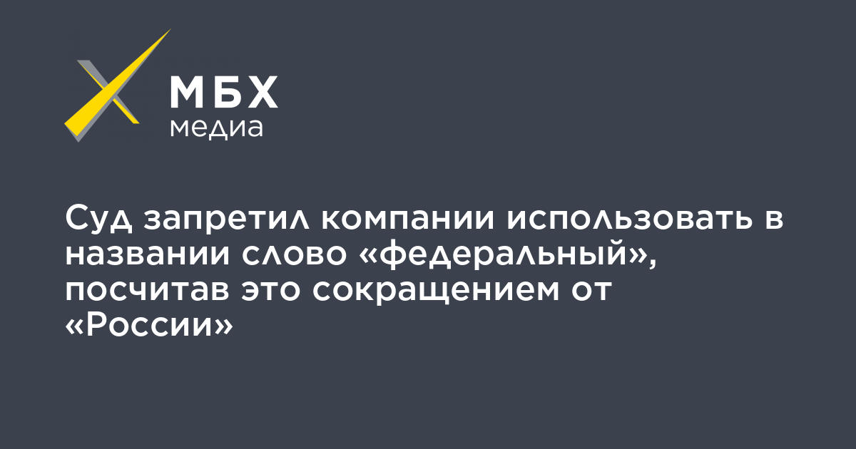 Суд запретил компании использовать в названии слово «федеральный», посчитав это сокращением от «России»