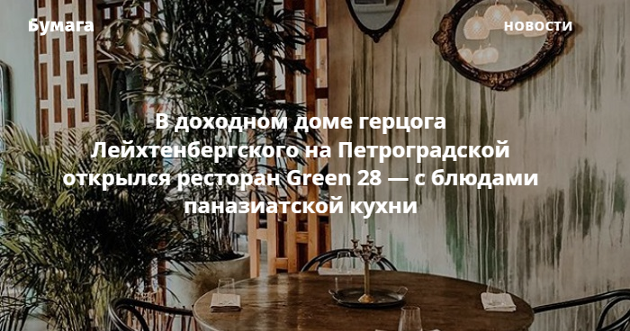 На Петроградской открылся ресторан Green 28. «Бумага»