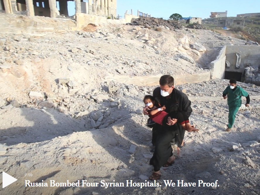 Газета The New York Times (NYT) сообщила, что в мае российская авиация обстреляла четыре больницы, расположенные на северо-западе Сирии. Такой вывод издание сделало, проанализировав записи переговоров российских летчиков, отчеты наблюдателей и заявления очевидцев.