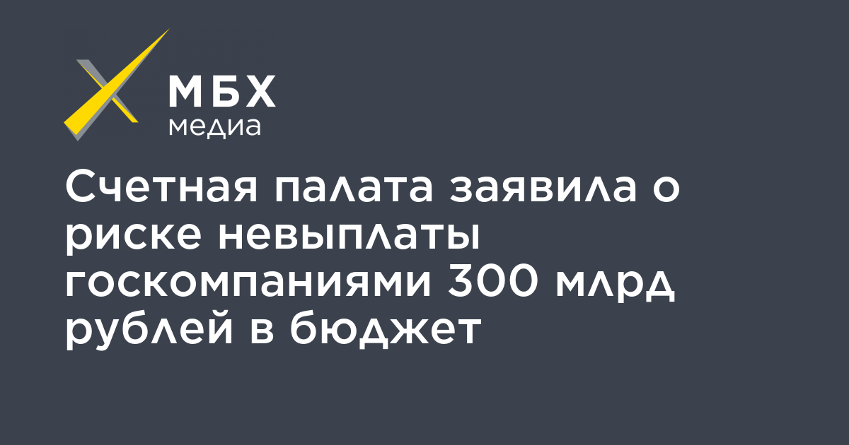 Счетная палата заявила о риске невыплаты госкомпаниями 300 млрд рублей в бюджет