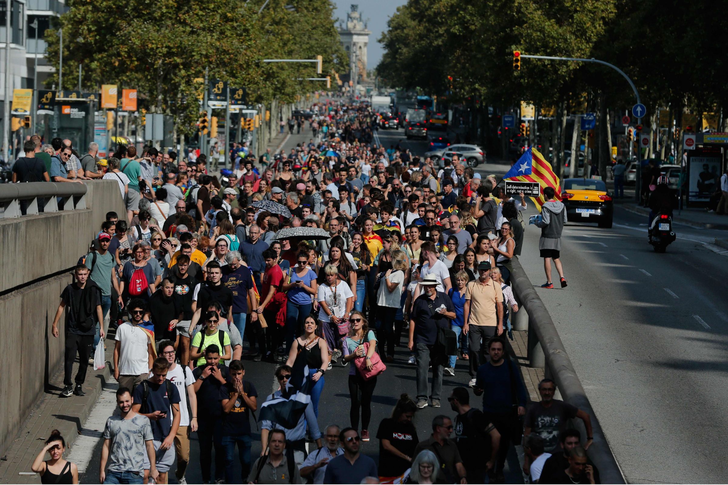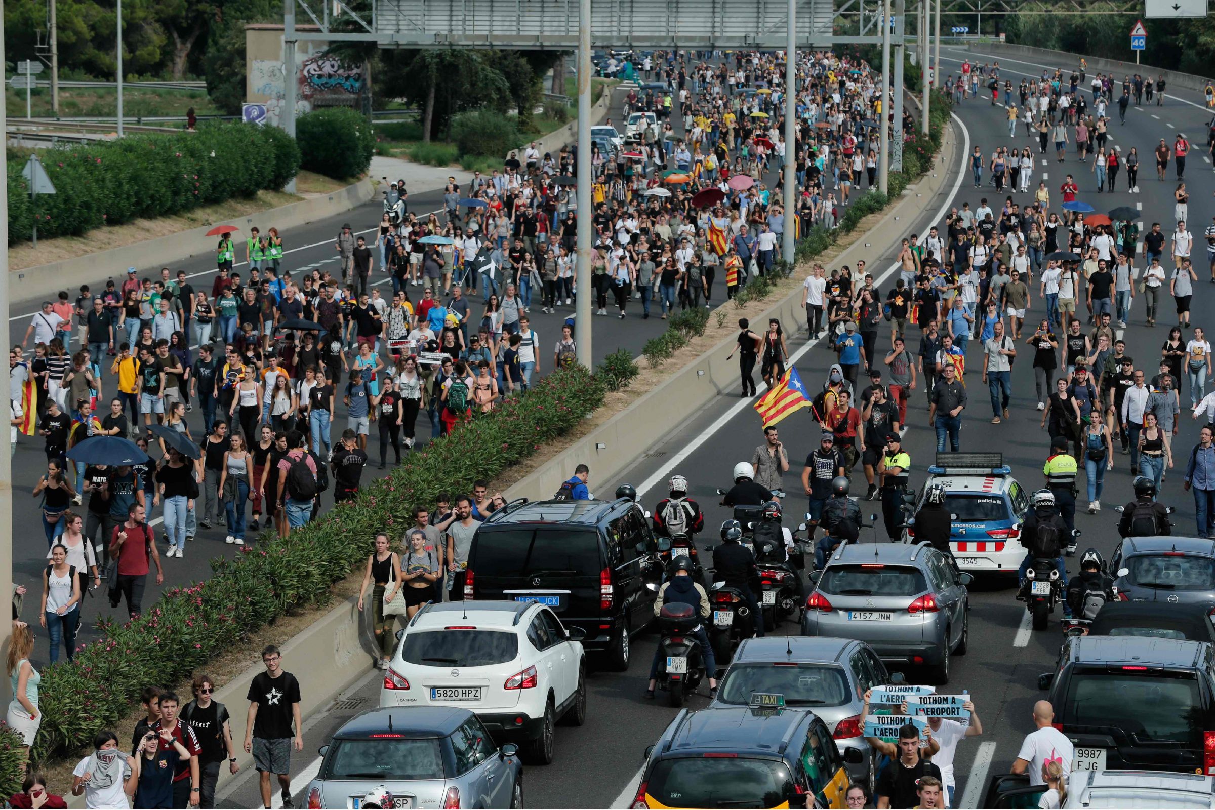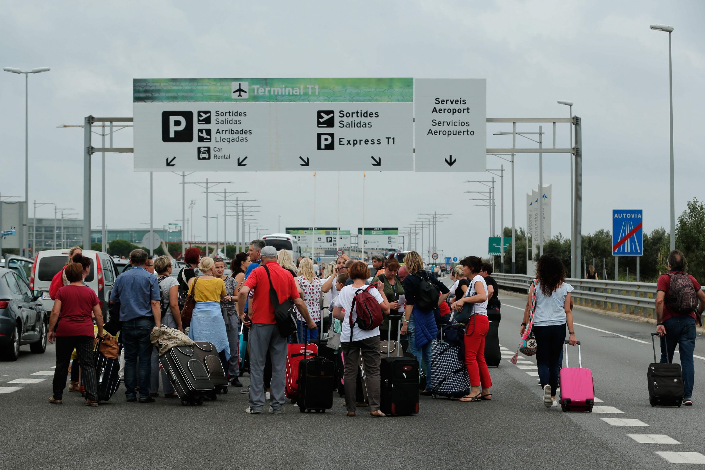 Тысячи демонстрантов прошли шествием к аэропорту Барселоны, перекрыв движение на автомагистралях. Также протестующие ненадолго остановили работу метро и железной дороги. Многие люди, которые собирались улететь из города в этот день, были вынуждены добираться до аэропорта пешком.